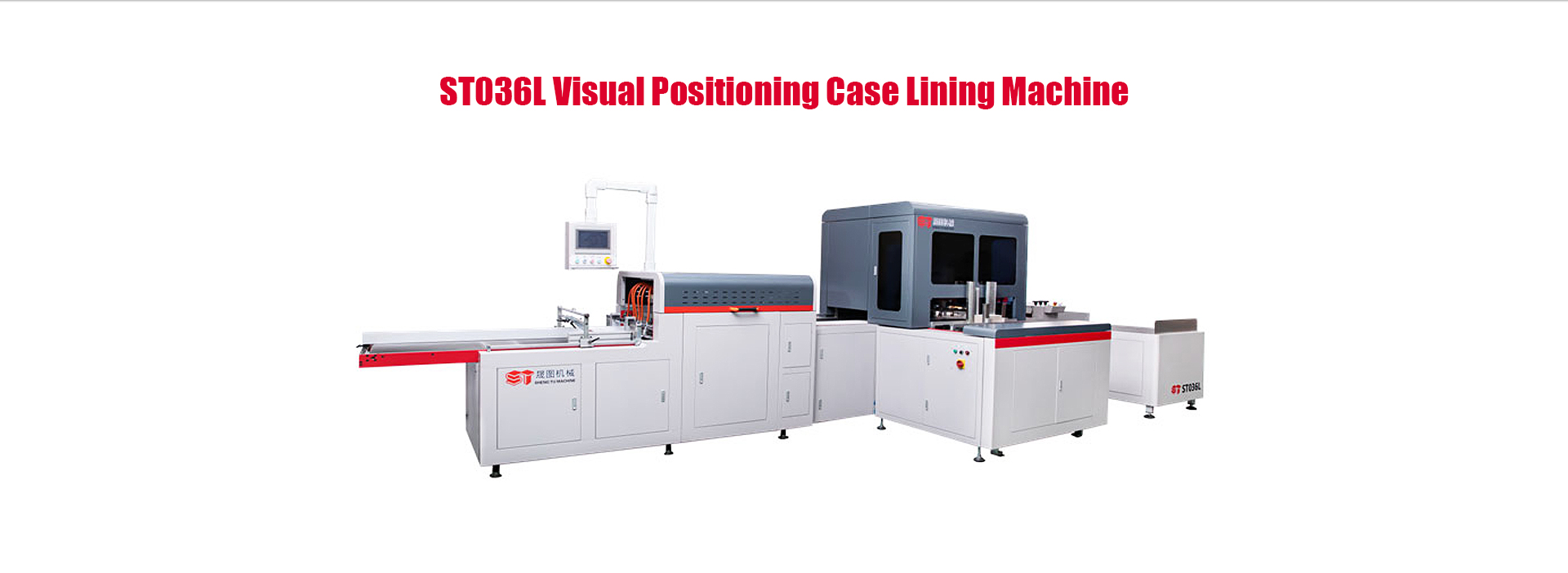 ST036L visual positioning case lining machine applicable for pasting the inside paper for the cigarette box, liquor box, comestic box, electronic box, sweet box..etc with the visual positioning system, it has adopted the high precision camera YAMAHA robotic arm accuract±0.1mm and the vertical suction feeding device can avoid the scratches, thus improving the product quality.